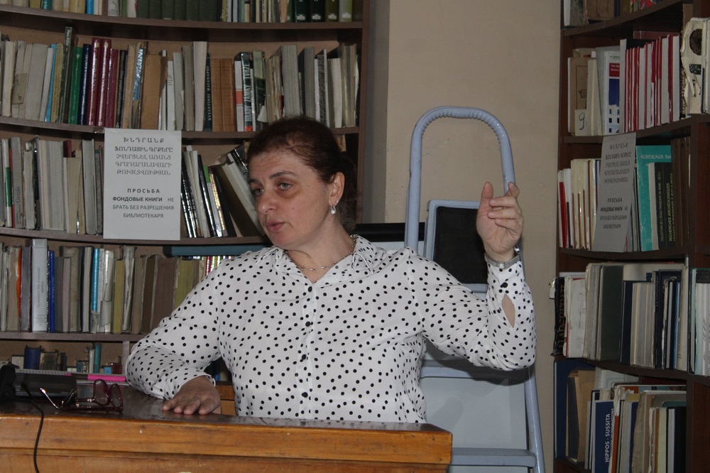 On September 25, the Departments of Epigraphy and Medieval Archaeology of the Institute of Archaeology and Ethnography, NAS RA, held a seminar in the Institute’s reading room as part of the “Medieval Studies Discussions” series. The presentation was delivered by Susanna Adamyan (PhD), a researcher in the Department of Epigraphy, on the topic “The Untypical Heritage of Hrachya Acharyan: Hayardzan.”